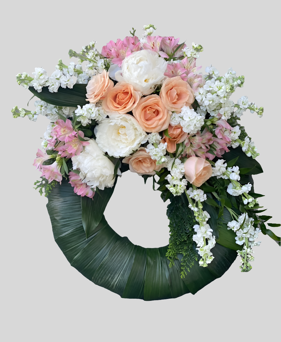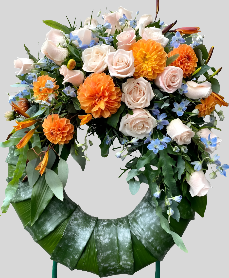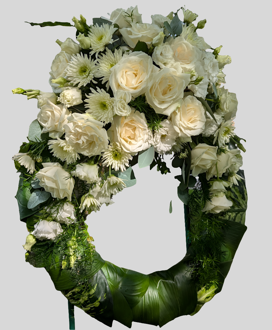 Här ser du bilder på olika kransar som kan ge dig inspiration. Du kan välja bland fem olika färg kombinationer men på webben kan du inte välja blommor. Vi skapar kransen i de färger du valt i säsongens vackra blommor.