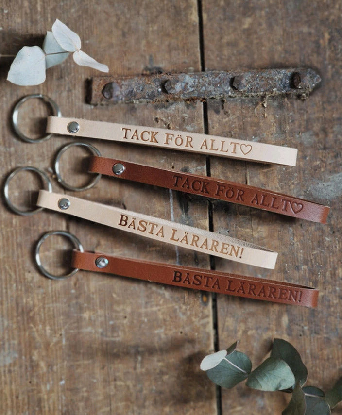 Kort nyckelband i ljust eller brunt läder