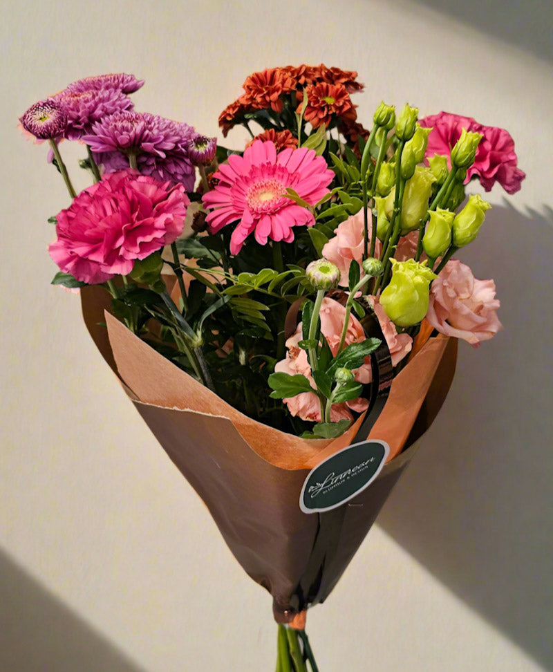 Veckans bukett är en bukett med säsongens vackra blommor och det är floristen som väljer vilka blommor som är i buketten du beställer. Buketterna på bilden är bara ett exempel.