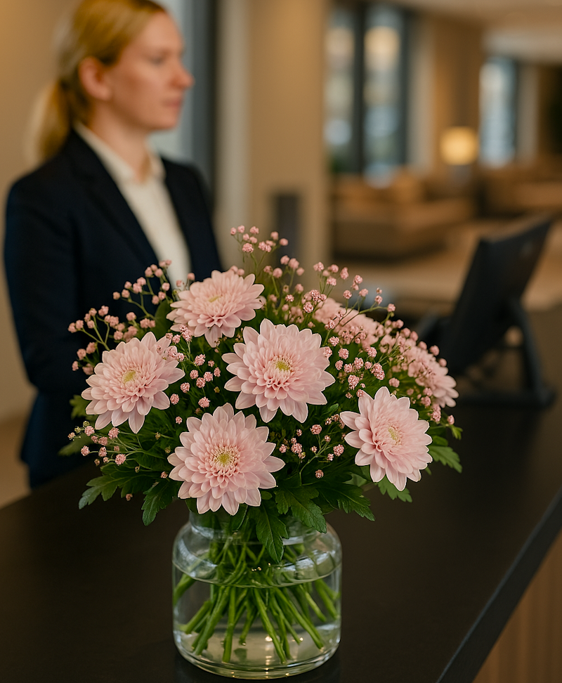 Du behöver inte längre planera dina buketter till receptionen, väntrummet eller möteslokalen. Låt oss göra det åt dig och luta dig tryggt tillbaka.